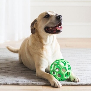 Made from soft, stretchy rubber, the JW Hol-ee Roller features a unique open design that lets pet parents insert treats, kibble, other small toys, ice cubes, or whatever else you can think of to create a mentally challenging puzzle treat experience for their dogs.