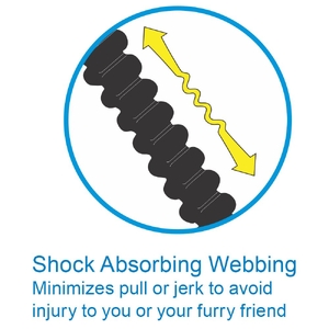 • Shock Absorbing Webbing - Soft touch bungee to ease the pull strength and pressure placed on you and your dog.